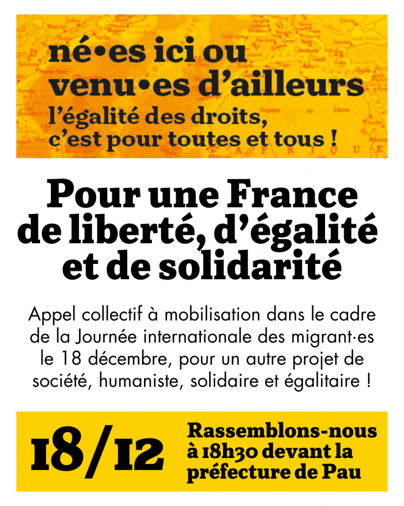 Le CRDE Solidarité Migrants Pau-Béarn appelle à manifester ce jeudi 6 février 2025 devant la Mairie puis la Préfecture de Pau :